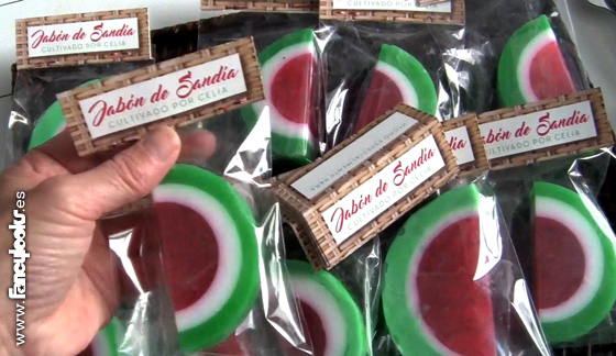 El kit para hacer jabones de sandía se lo compré, como regalo de cumpleaños solicitado por la propia Celia, a la tienda online Gran Velada, especializada en materiales para hacer jabones, velas, cosméticos, champús, etc. Esta tienda está genial y ofrece una gama completísima de productos, si os interesa este tipo de trabajos os animo a visitarla porque os va a flipar.