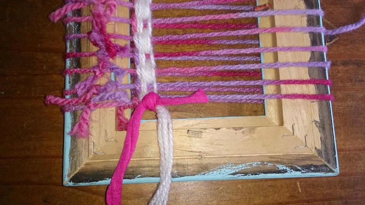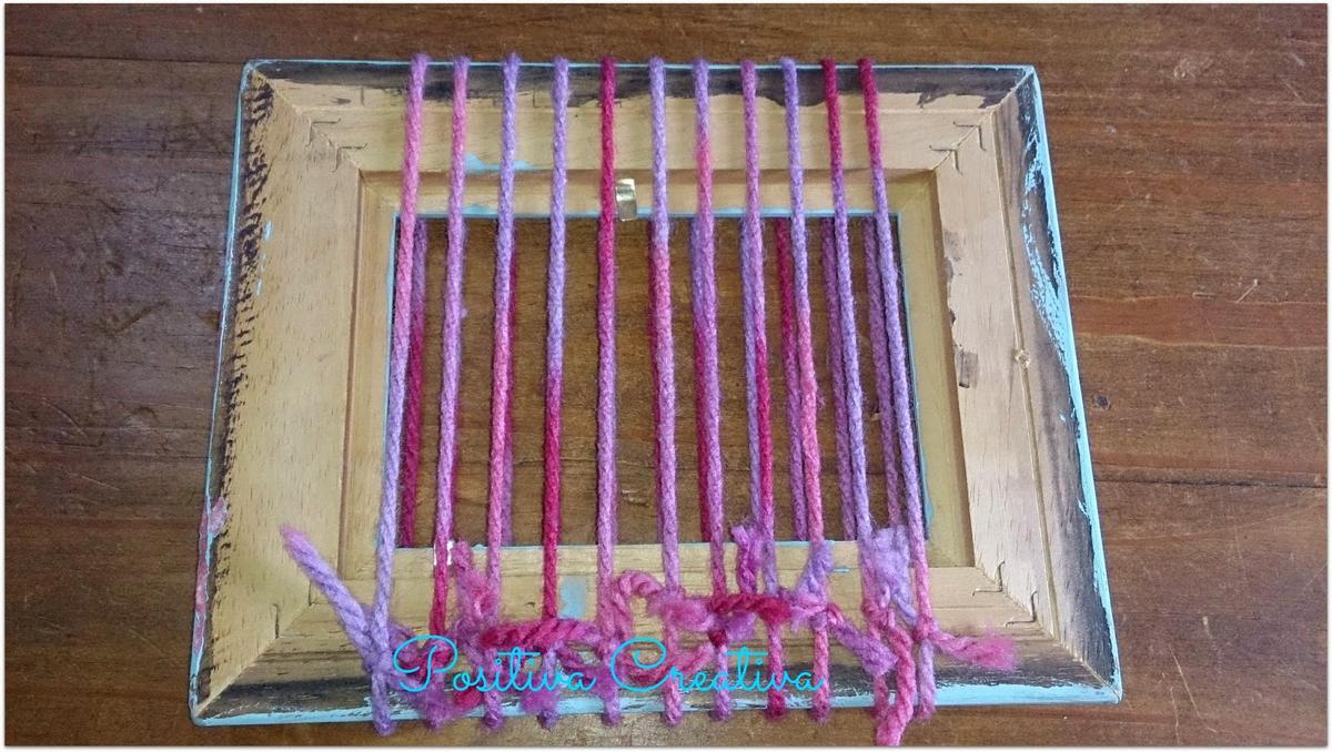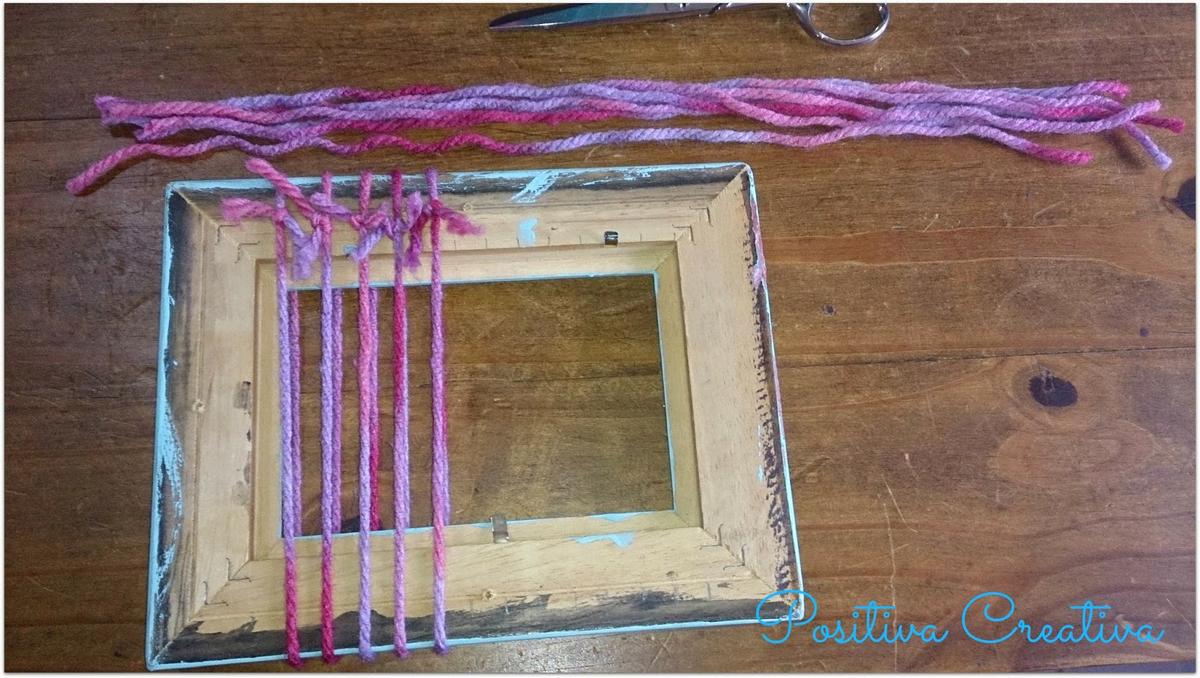 Para que sea original, he usado un marco de fotos reciclado para usarlo como telar.