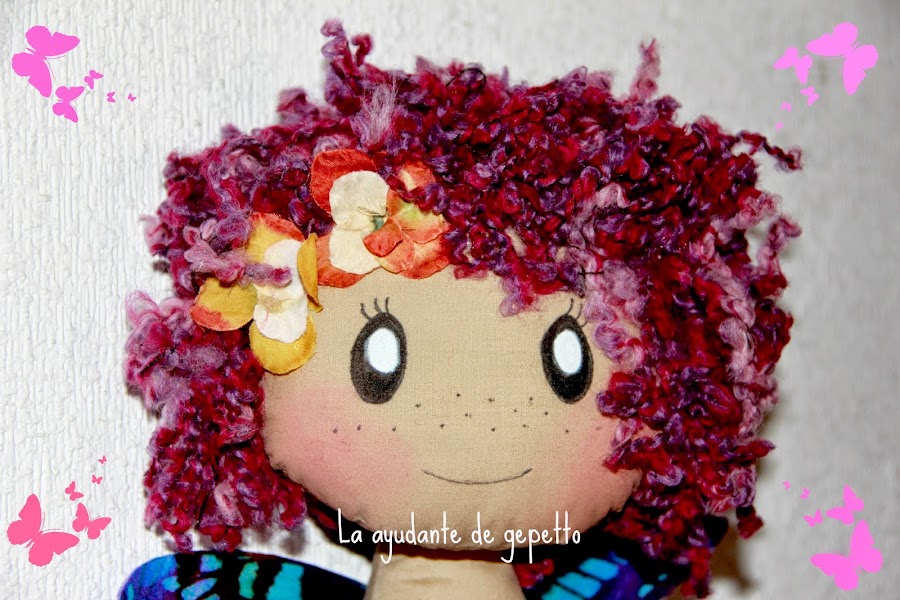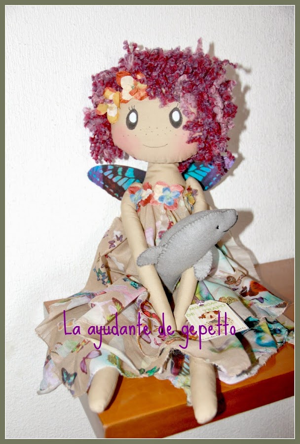 como veis lleva un delfín entre los brazos.Me la encargaron personalizada, pues la persona receptora de esta muñequita le encantan las hadas y los delfines.