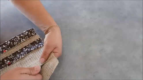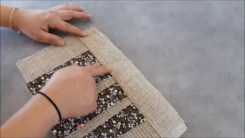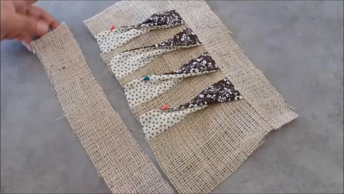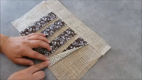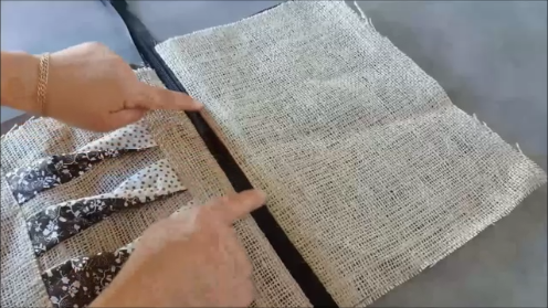 Estas 4 piezas vamos a unirlas a las de tela de saco, de forma que te queden de esta manera: