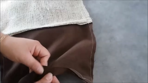 Ponemos la pieza del derecho y pasamos una puntada por el borde para asentar las telas