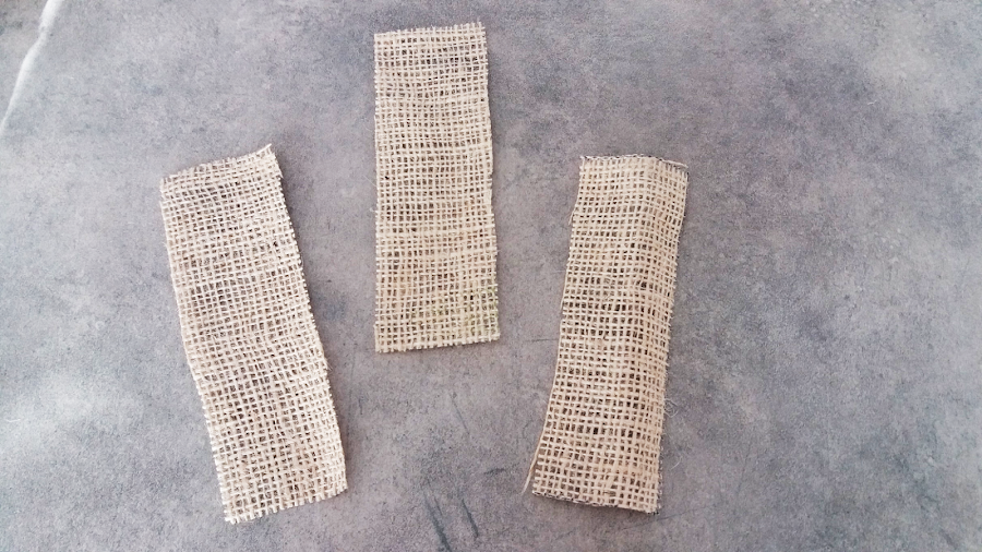 3 piezas de 5x15 cm en tela de saco