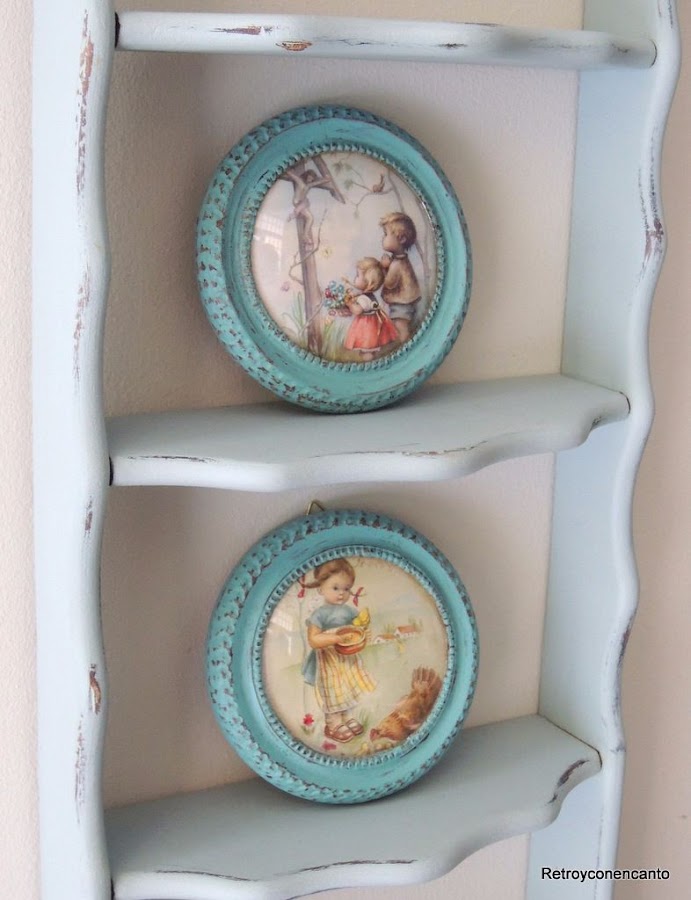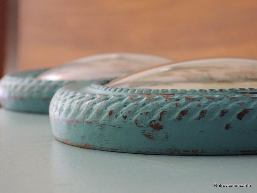 Nos gusta tanto la veta de la madera que la hemos dejado, así sin más, tras una ligera lija y una buena capa de cera. También hemos cambiado los colgadores originales que, no sabemos por qué misteriosa razón, no estaban centrados con respecto a las imágenes.