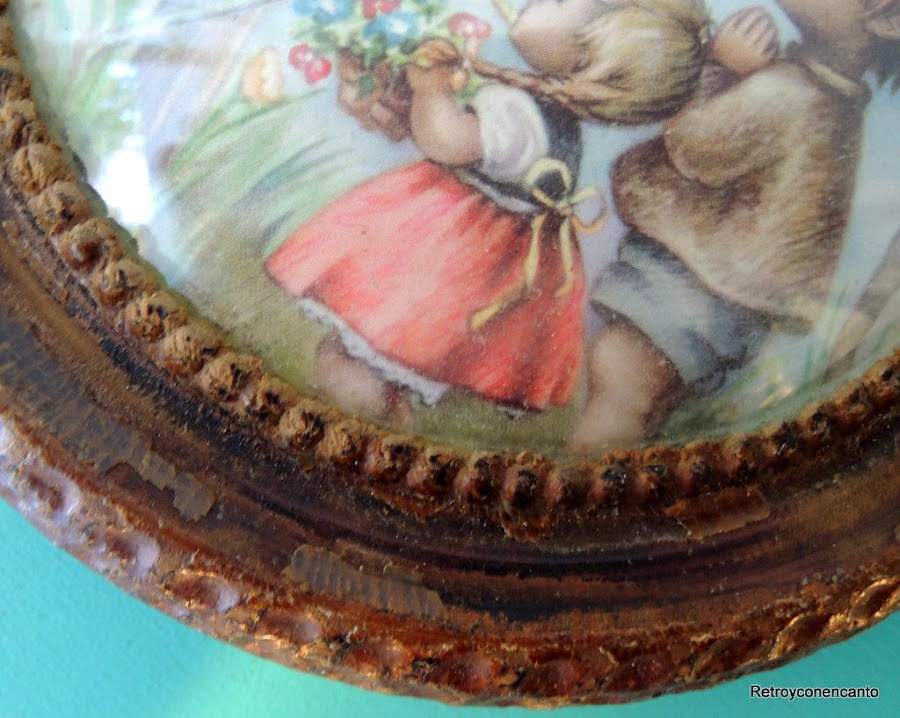 Decir que se nos quitó el mal cuerpo de repente sería mucho decir, pero sí nos entonamos un poco con la emoción del hallazgo. Esas láminas tan de nuestra niñez, enmarcadas dentro de dos trozos de madera natural, como se ve en la foto de una de las traseras, nos hicieron sonreír por primera vez en la fría mañana.