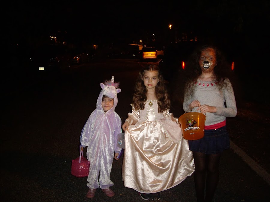 Ayer como es costumbre aqui en el norte, se festejo Halloween y mis hijas no se podian perder esa fiesta, asi que salimos en familia. Mi hijo ya esta mayor para ir a pedir caramelos, asi que solo salio para acompañar a sus hermanas, realmente nos divertimos muchisimo, aqui les dejo algunas de las fotos....