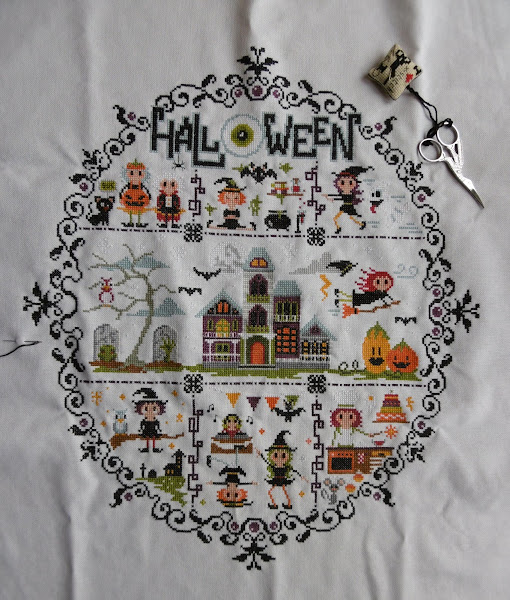 Este es el otro bordado en el que estoy trabajando, empece muy rápido, pero....hubo parón y va leeeeento, falta muy poco, casi casi rematar, la próxima foto terminado!!!
