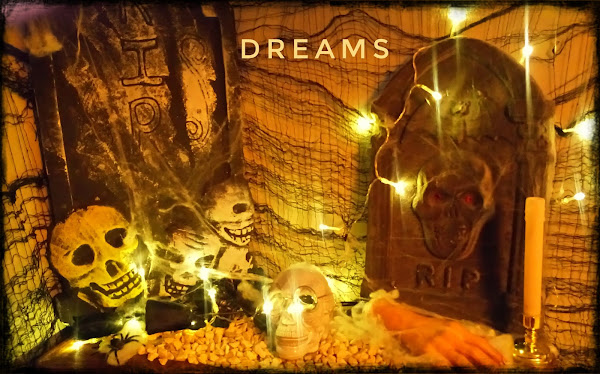 Y aquí otro rincón oscuro. Libros antiguos, calaveras, telarañas, velas ...