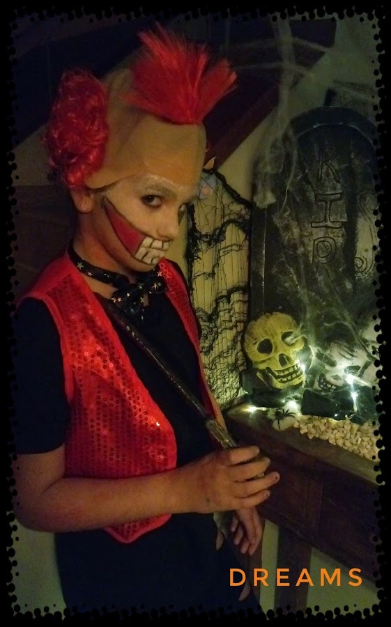 Mi peke colaboró en la decoración, haciéndole las manos con papel y en la oscuridad, quedaba genial.