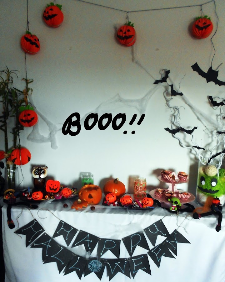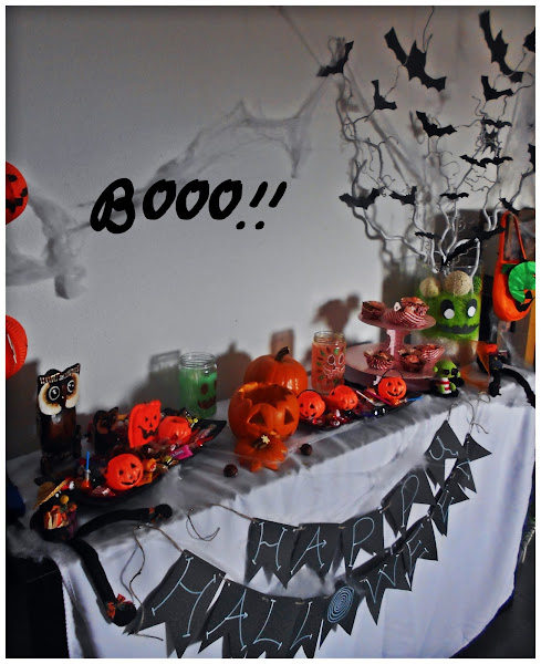 Tampoco podían faltar los banderines y las guirnaldas de calabazas , sin ellos no seria una fiesta completa :-)