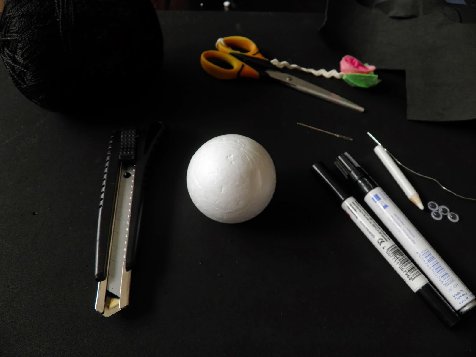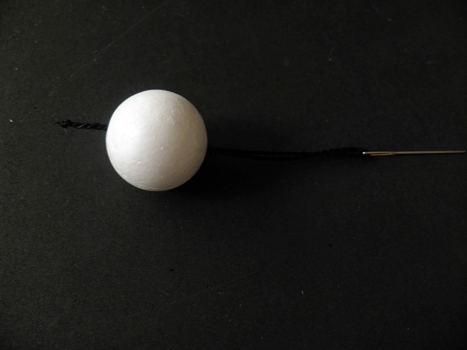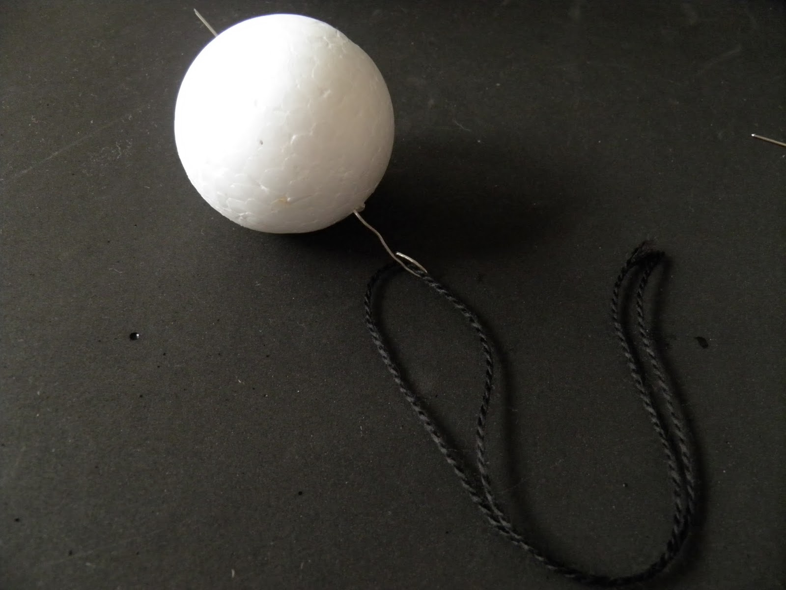 Las uniremos a la bola de porexpan haciendo una incisión con el cutter y metiendolas a presión. Se le puede añadir un poco de pegamento para que no se desunan.?