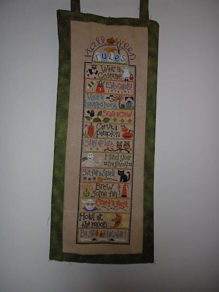 Este bordado lo hicimos Sal en el grupo punto de cruz ya hace tiempo... y estaba allí .. en el cajón...Y lo saque...lo monte tipo sampler y aquí esta, decorando mi casa en estas fechas hasta que ponga el de Navidad que me regalo Ely.....