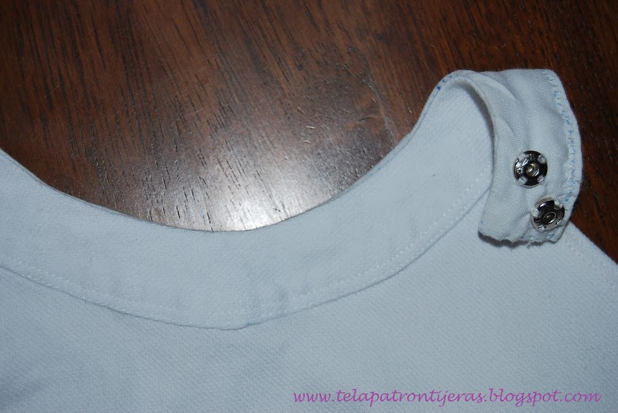 Cogemos el bajo con un pespunte y cerramos el cuello del top (en el mismo lado del cierre lateral), con unos automáticos.