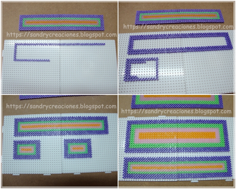 Paso 3. Pasar los patrones a Hama Beads. Una vez tenemos los patrones realizados ya podemos empezar a realizar las piezas del estuche con Hama Beads Midi en placas adecuadas para ellos. Para las piezas más largas utilizamos 2 placas y para las cortas 1.