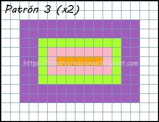 Paso 2. Realizar el patrón cuadriculado con el diseño que queramos que tenga nuestro estuche. Mediante una hoja de papel cuadriculado, un programa para pixelar o directamente sobre las placas de Hama Beads empezamos a diseñar el aspecto de nuestro estuche. Nosotros los realizamos con el programa "Bead Tool 4" y los patrones que diseñamos fueron los siguientes: