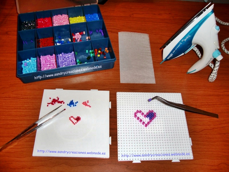 No se necesitan muchos materiales ni herramientas para poder empezar a realizar cosas realmente bonitas, simplemente necesitamos una placa de Hama Beads para poder poner los Hama Beads según el dibujo o motivo que queramos hacer y que no se muevan de sitio cuando les apliquemos calor, por supuesto necesitamos también Hama Beads que los suelen vender en bolsas de 1000 o 2000 unidades de un solo color o una mezcla de varios colores, un poco de papel de horno, una plancha de ropa y como herramientas opcionales unas pinzas de laboratorio para colocar los Hama Beads en la placa.