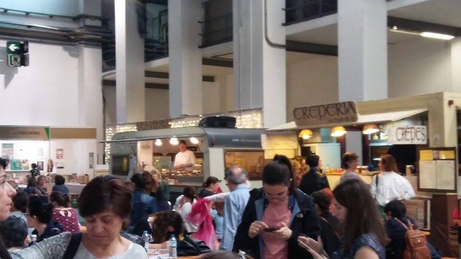 Y esta es la zona de comer, este año nos hemos traído la comida de casa, pero hay paraditas con una comidaaaaa, sobre todo de postres, qué ricos!! lo bueno de este edificio es que comes bajo techado, si llueve no problem!!
