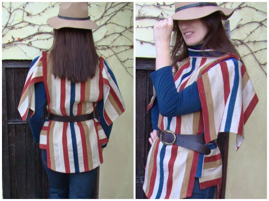 El caso es que cuando a finales de agosto empecé a ver que los ponchos eran una de las apuestas para este otoño, no pensé que me apuntaría...pero pocos día después me regalaron esta tela de tapicería, que cuando vi por primera vez pensé que sería para unos cojines y al final, ya veis...me lo he puesto encima.