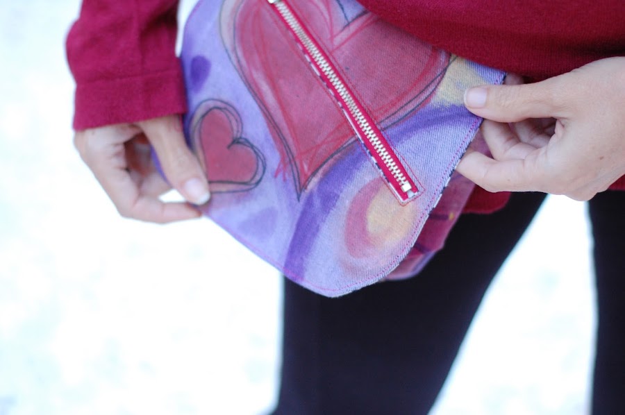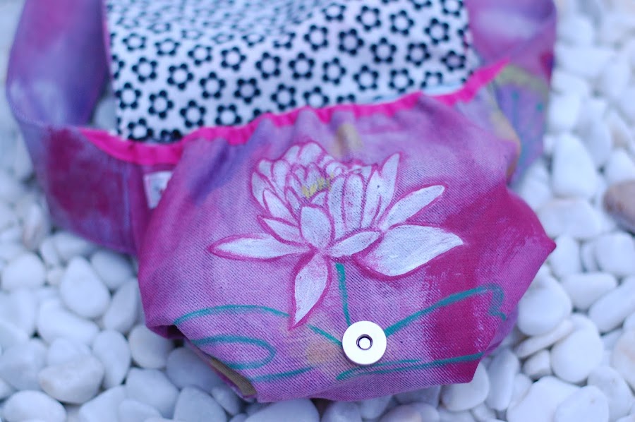 Pero si encima te pones a pintarla a mano, pensé que sería interminable. Realmente me ha costado mas pintarla que coserla (incluidas cremalleras), pero la verdad es que he disfrutado como nunca retomando los pinceles y creando una riñonera a mi gusto.