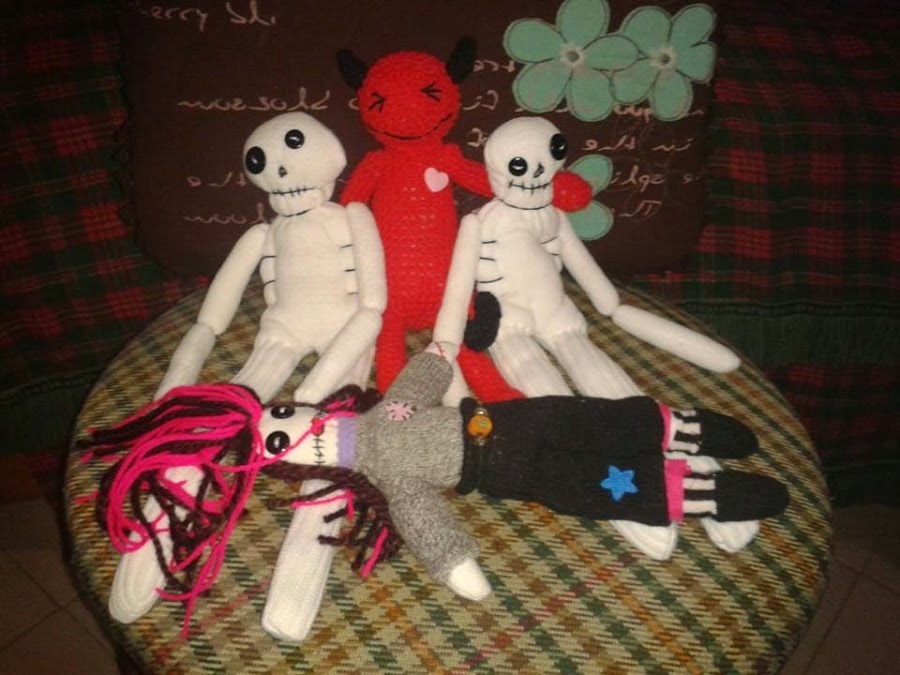 Estos fueron hechos con calcetines y el diablito en crochet.