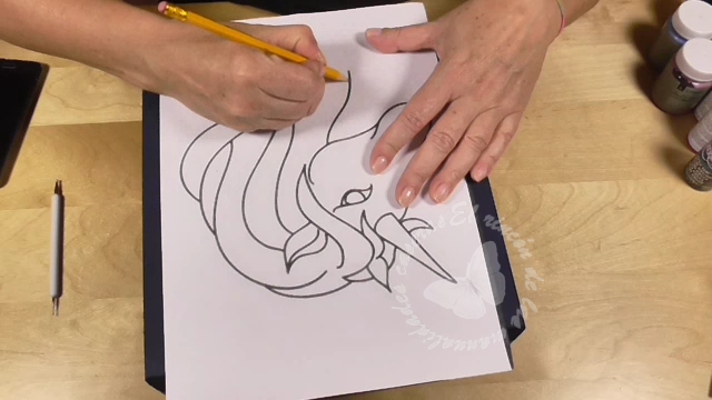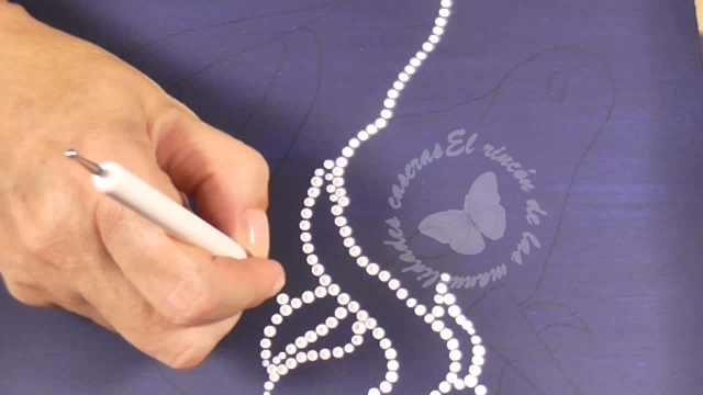 El siguiente paso, con una hoja de papel carbón marcaremos la imagen que queramos que tenga nuestra caja en la tapa, en mi caso un unicornio, y con un buril de manicura de un tamaño intermedio iremos marcando toda la silueta del unicornio con puntitos.