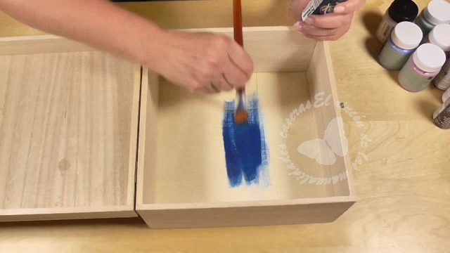 Lo primero que tenemos que hacer es preparar nuestra caja de madera la vamos a pintar con pintura acrílica de un color oscuro, para que luego los puntitos destaquen con el fondo y la dejaremos secar.