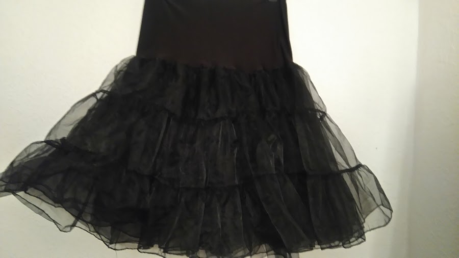 Viendo y recordando fotos de vestidos años 50, pensé: Y si me compro un Cancan? Busqué y encontré de muchos precios. Finalmente me compré este.