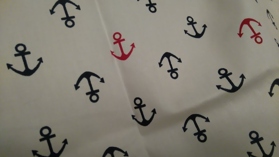 Tengo varias del estilo y de otros estilos en la lista de favoritos, y empecé por comprar esta. La tela está genial, es bonita y tiene muy buena pinta. Es blanca, con las anclas en rojo y azul y en distintas direcciones. Compraré una tela de forro e igual hago una faldita para verano. Que os parece?