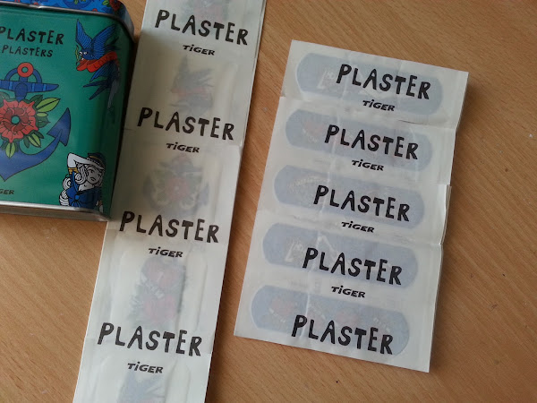 Y por último en Tiger, una tontería, que por cierto vio mi chaval, me las enseño y le dije: Siiiii!!! Las quiero!!! Quiero que mis heridas sean molonas. Y ahora lo entenderéis, porque son unas tiritas, o apósitos, muy old school. Vienen en una cajita metálica muy chula, y son tiritas estampadas. Vienen en dos tamaños, 3 láminas de cada tamaño, y costaron 3€. No estoy deseando hacerme una herida, pero...