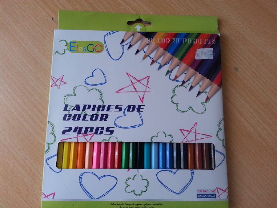 Me compré una caja de pinturas de palo, o de madera, las que son como un lápiz. Son de ElesGo, vienen 24 y son colores muy chulos. Había de menos unidades, pero no recuerdo que hubiese de más unidades. Me costaron 3€ o así.