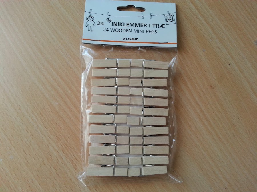 Cogí un paquete de mini pinzas de madera. Vienen 24 unidades y son muy pequeñitas. Tengo idea de decorarlas para los regalos de navidad y alguna cosilla más, así que a ver si me pongo con ello y hago un vídeo y un post. Me costaron 1€.