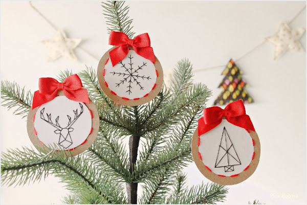1. ADORNOS REDONDOS CON LAZOS Y DIBUJOS COSIDOS: