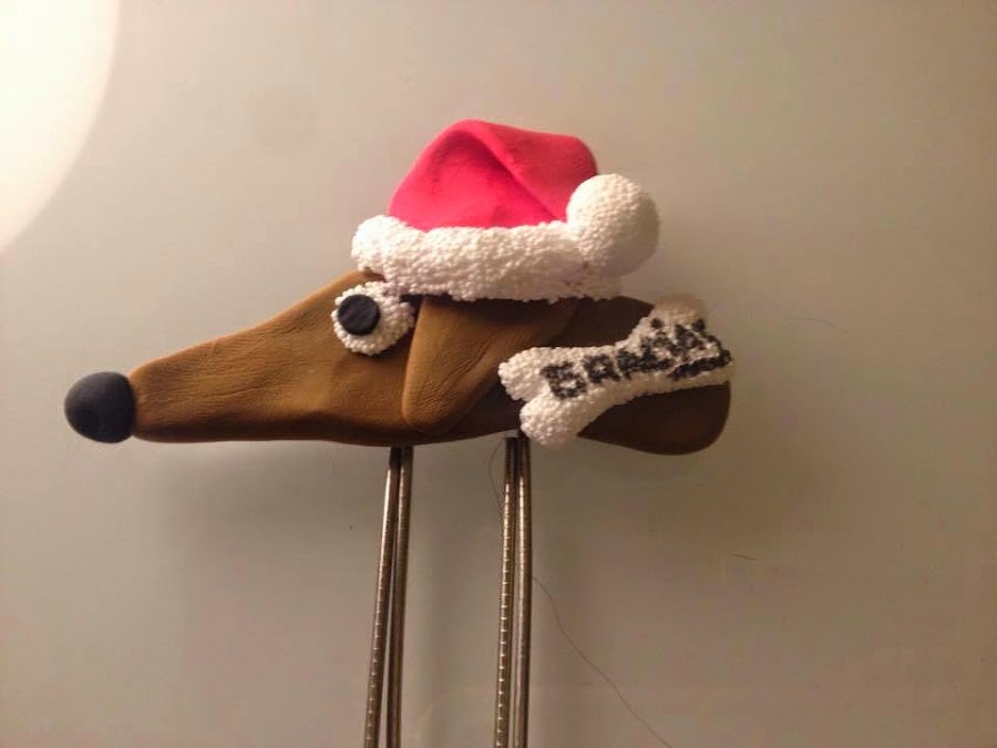 Nos hemos inspirado en los Imanes solidarios que hacemos para S.O.S perrera Badajoz aportándole el toque Navideño del gorro, y cambiando el Imán por un clip de gran tamaño para hacer un bonito marca-páginas. Hemos utilizado arcilla con textura para el gorro, ojo y hueso, así que el GRACIAS que hemos escrito no ha quedado todo lo bien que queríamos.
