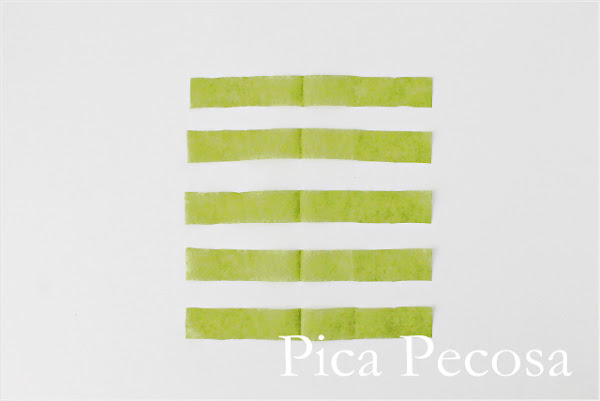 # Paso 3: Corta en tiras otra capa de la servilleta. Eso serán las hojas del árbol, así que hazlas lo suficientemente anchas para pegarlas al cono por un extremo y cortar flecos en el otro: