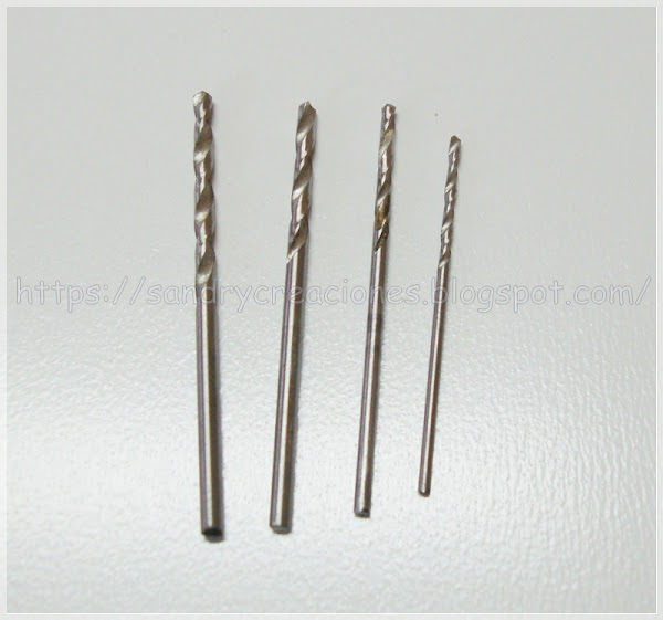 Paso 5. Pulir las piezas si es necesario y agujerear las piezas. Al usar molde la pieza sale bien definida y pulida con lo cual solo puliremos la parte plana de la pieza si hubiese quedado alguna raba o algún imperfecto con un poco de lija muy fina. Seguidamente con una broca de 3mm de diámetro y una multiherramienta Dremel realizamos un agujero en uno de los extremos de cada pieza y ya las tenemos listas para realizar el montaje del colgante.