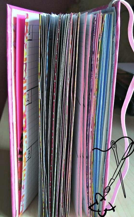En la contraportada puse un papel decorado y un bolsillo, y la primera página es un calendario, de 2014, por un lafo y de 2015 por el otro, que no se ve :)