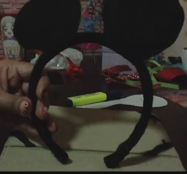Forramos la diadema con fieltro negro y le pegamos la orejas.