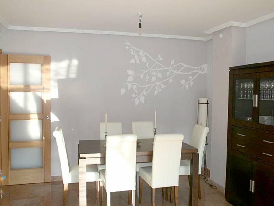 En este reportaje veremos cómo utilizar estas máquinas auxiliares, que convierten el trabajo de hacer dibujos murales en una labor sencilla. Luna Azul ha echado mano del viejo proyector que precisamente utilizaba su padre para pintar. El resultado es un adorno muy sobrio y moderno, con el que nuestra amiga ha puesto un detalle de buen gusto en el comedor de su casa, en perfecta sintonía con los muebles y el color de la pared.
