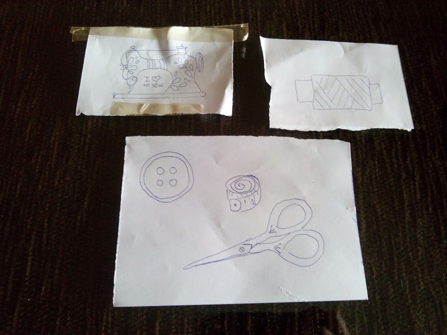 Lo primero es elegir el diseño. Como no se me da bien dibujar he buscado imágenes por Google y las he pasado a un folio para calcarlas después en el parche, la temática de mis parches es la costura.
