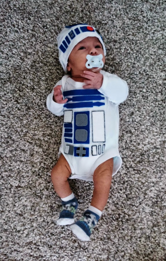 Y aquí una foto de mi niño con el disfraz puesto. ¿A que es muy original?