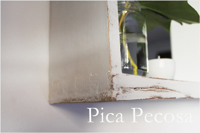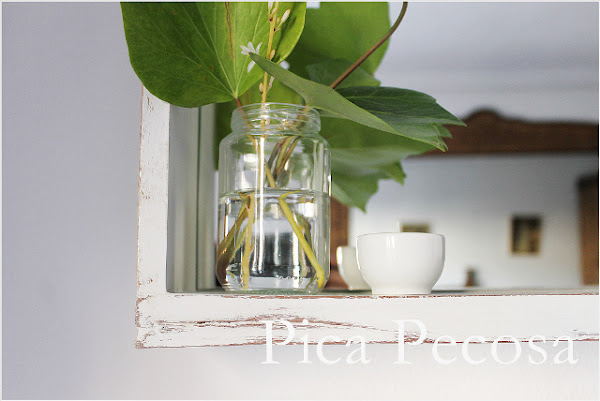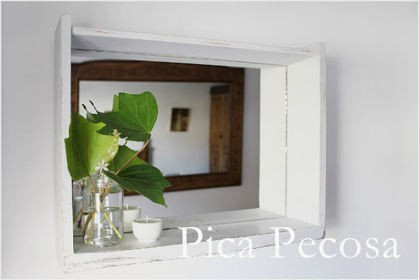 Eso es lo que tenía en mente cuando encontré el cajón de la mesita entre los escombros de la obra del padrino. Supongo que verlo allí, fuera de su contexto hizo que se me encendiera la bombilla. Era lo que necesitaba, el marco con balda para mi espejo: