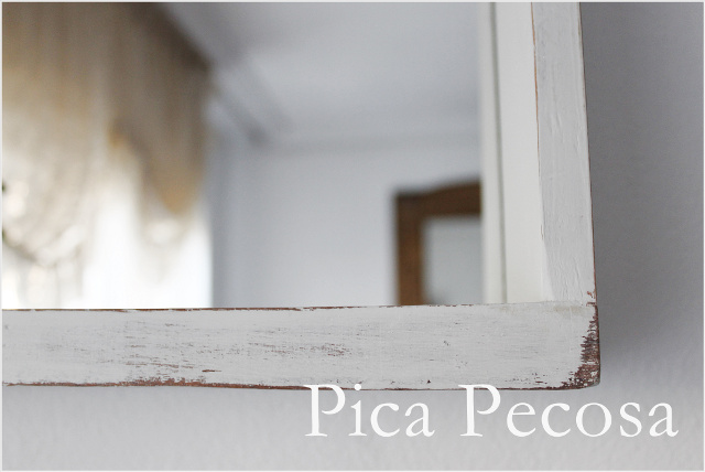 Quería conseguir un efecto antiguo, como que había pasado mucho tiempo por él, así que le pasé una lija de grano fino para que se viese la madera por aquellos sitios que estarían más desgastados si el espejo tuviese muchos años: