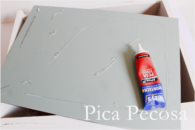 Por último, sólo tuve que pegarle el espejo, que me cortaron a medida en una cristalería. Para ello utilicé el pegamento TRIAction líquido de la marca Ceys, que tan buen resultado me había dado para pegar las piedras del portarretratos que te enseñé en verano (aquí):