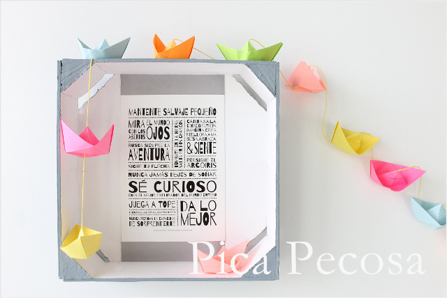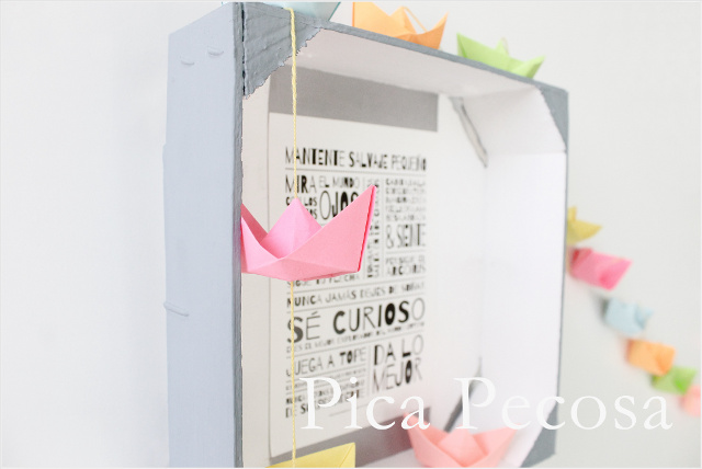 Le he hecho un millón de fotos porque no me canso de mirarla, creo que es de los DIY que más me gusta cómo han quedado. Y también me parece que esta no será la última vez que recicle una caja de fresas para convertirla en un marco (ya te contaré).