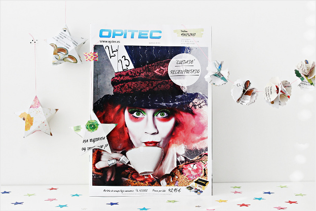 Esta es la mía, que publiqué en Instagram y en la que animaba a abrir el catálogo y empezar la fiesta del DIY. Las estrellas y la guirnalda las hice con sus propias hojas: