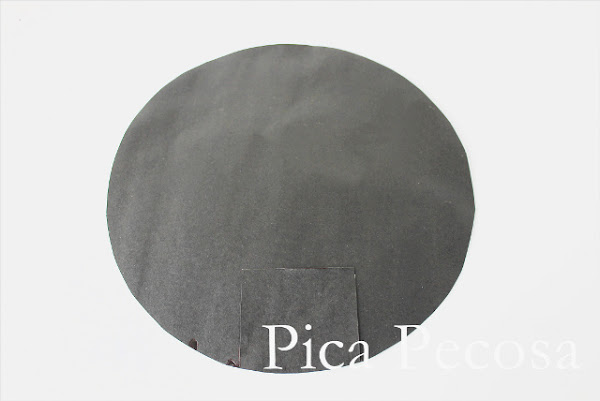 # Paso 5: En la otra parte de la bolsa, marcar y recortar un círculo que será el ala del sombrero: