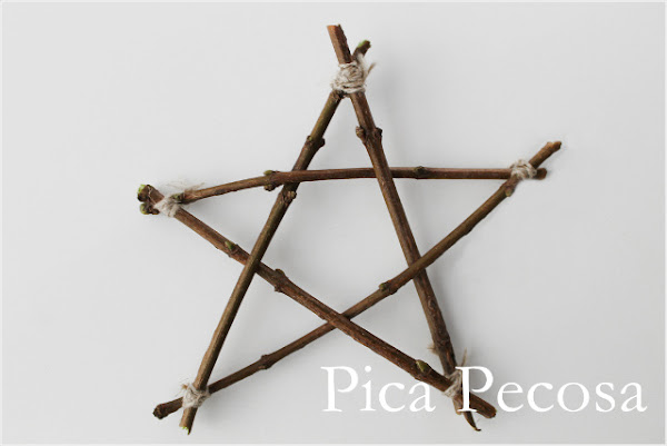 - Una rama de un árbol. De ella se sacarán los cinco palitos que formarán la estrella. Mejor si es delgada y no está muy seca para que doblen sin romper al meterlos unos por otros. La medida dependerá de lo grande que quieras hacerla, pero recuerda que cuanto más cortos, más trabajo te dará encajarlos (pero más adorable (#laniña dixit) quedará).