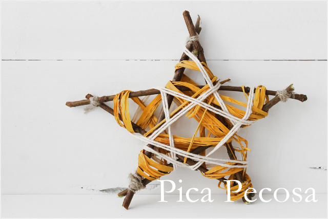 Y este es el resultado, una bonita y rústica estrella de Navidad hecha con una rama y un trozo de cordel: