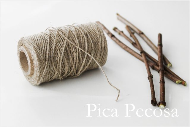 - Trozos de cordel, hilo, lana, etc. Para sujetar los palos entre sí. Yo escogí cordel porque combinado con la madera le da un aire muy rústico, que era lo que buscaba.