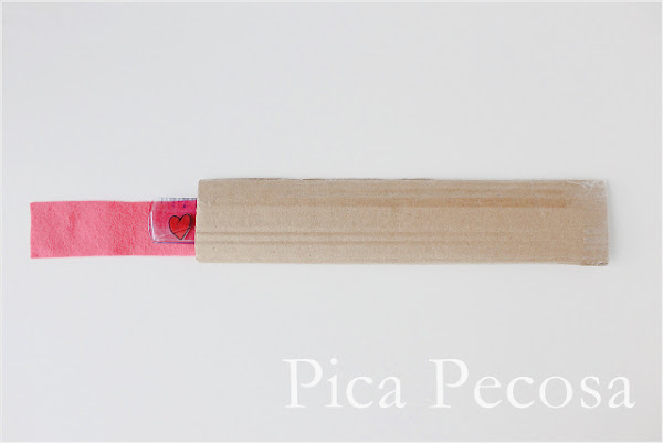 # Paso 2: Cortar una tira de fieltro del mismo ancho que la regla, pero más largo que el cartón. Esta es la sorpresa, que tendrá el mismo sistema que utilicé para las fundas de los móviles (aquí, aquí y aquí):