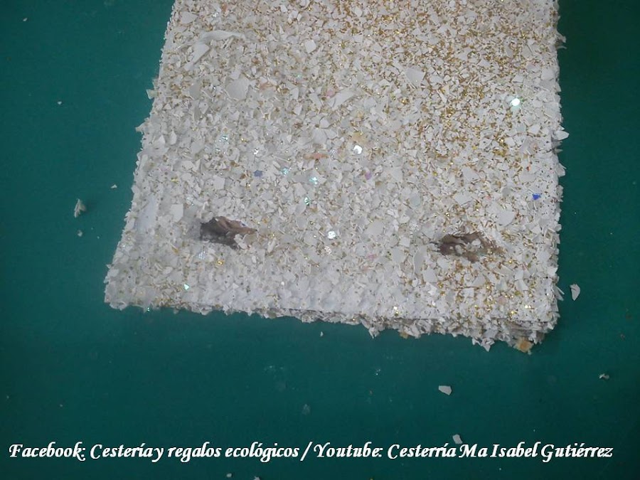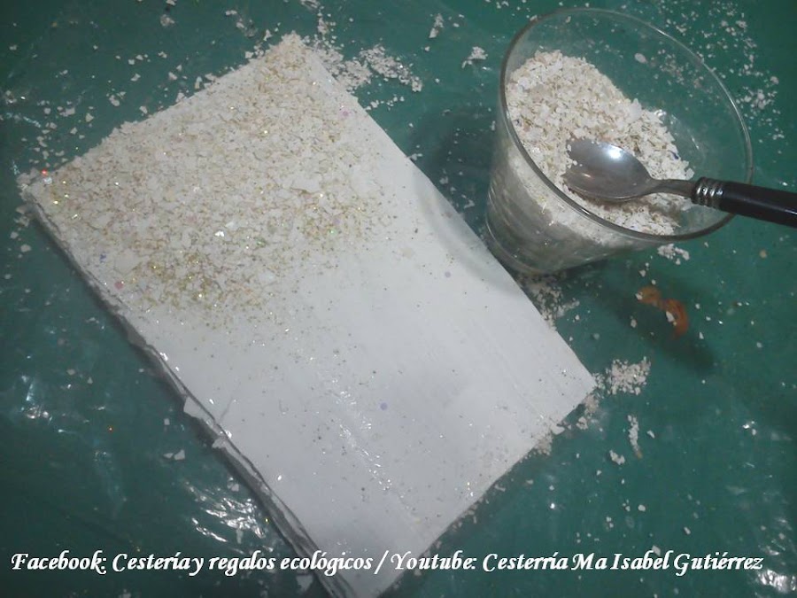 Pintamos y cubrimos con el mismo cascarón molido y diamantina...